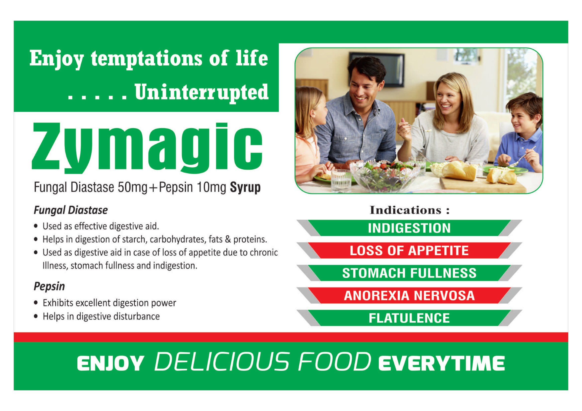 Zymagic Syrup is a powerful digestive formulation that combines Fungal Diastase 50mg and Pepsin 10mg to relieve indigestion, gas, stomach fullness, and loss of appetite. It supports healthy digestion, improves nutrient absorption, and helps you enjoy meals without discomfort.